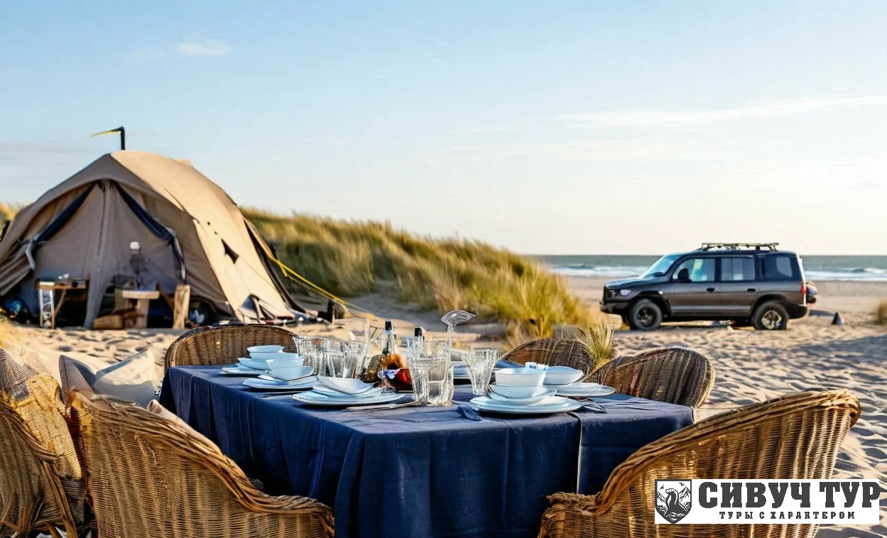 Проверка теста. Два дня палаточного кемпинга с видом на океан. Включены термальные источники и рыбалка.